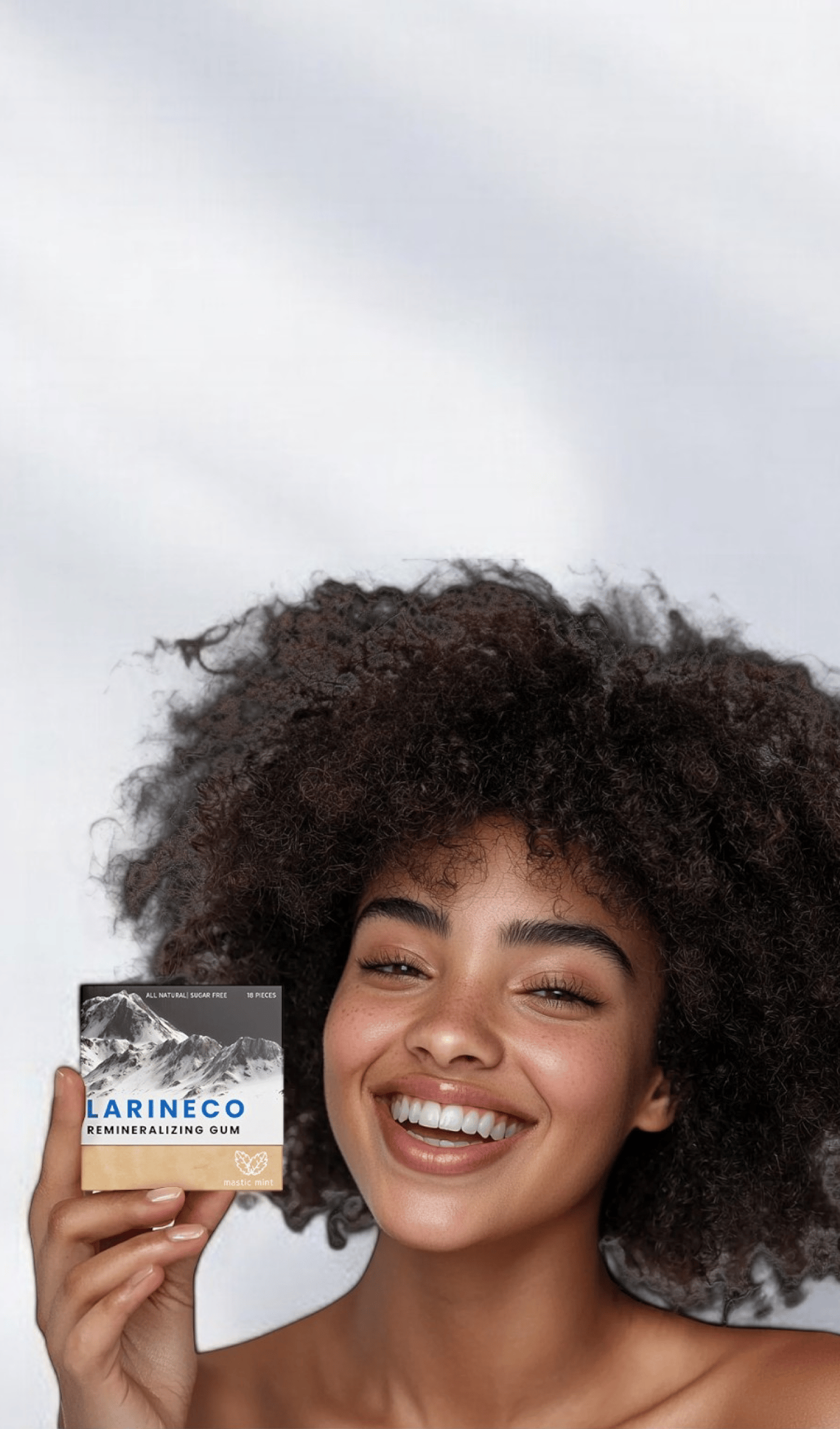 LarineCo Remineralizing Gum is your daily secret for a confident smile. The gentle whitening action works gradually to remove stains without harsh bleaches, while hydroxyapatite smooths enamel for light-reflecting shine. Just chew, smile, and glow.